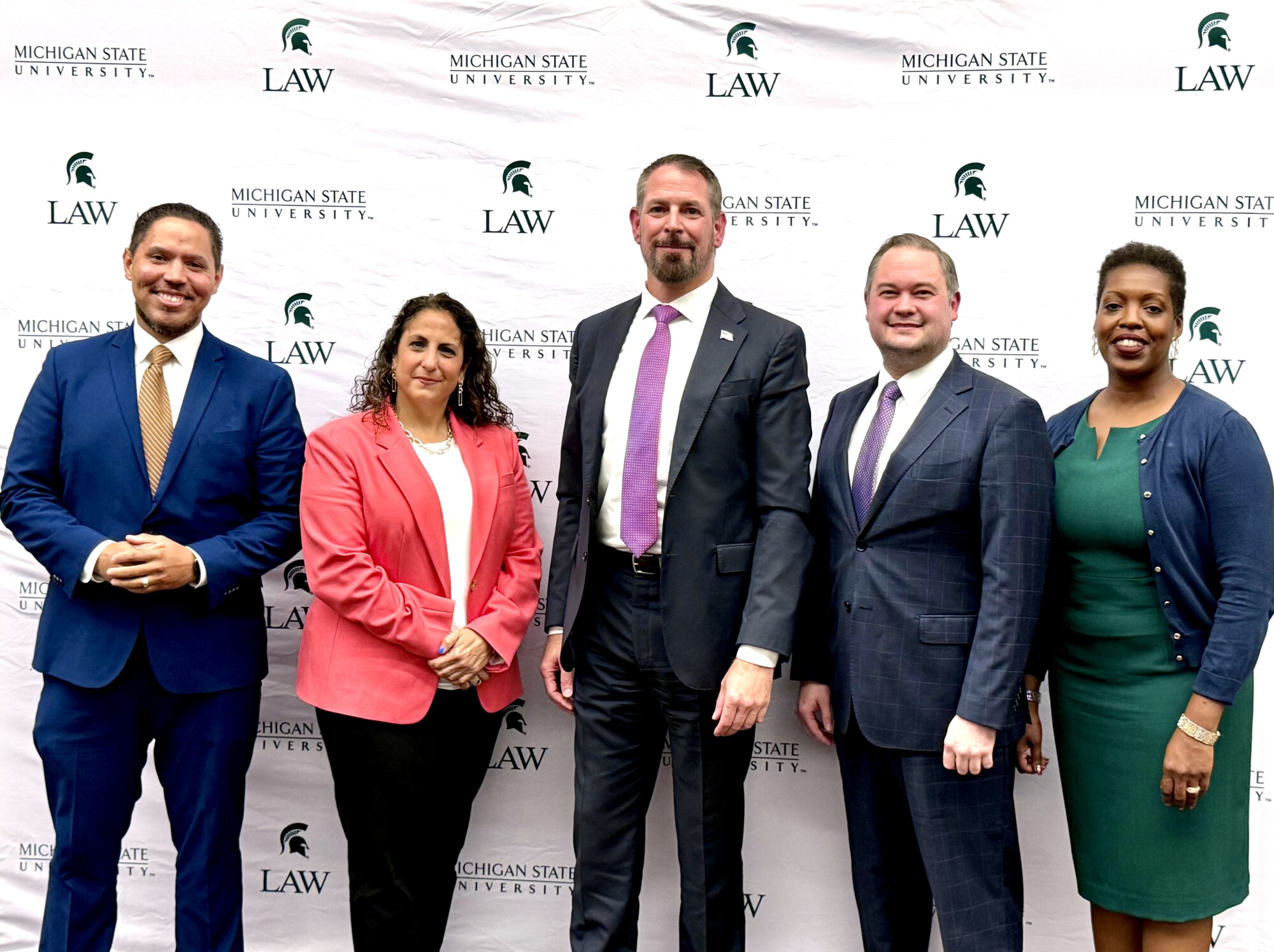 Michigan Supreme Court Justice Noah Hood, attorney and State Bar of Michigan President-Elect Lisa Hamameh, State Bar Committee on Professionalism and Civility member Timothy Lessing, Alex Rusek and MSU Law Assistant Dean Ieisha Humphrey.